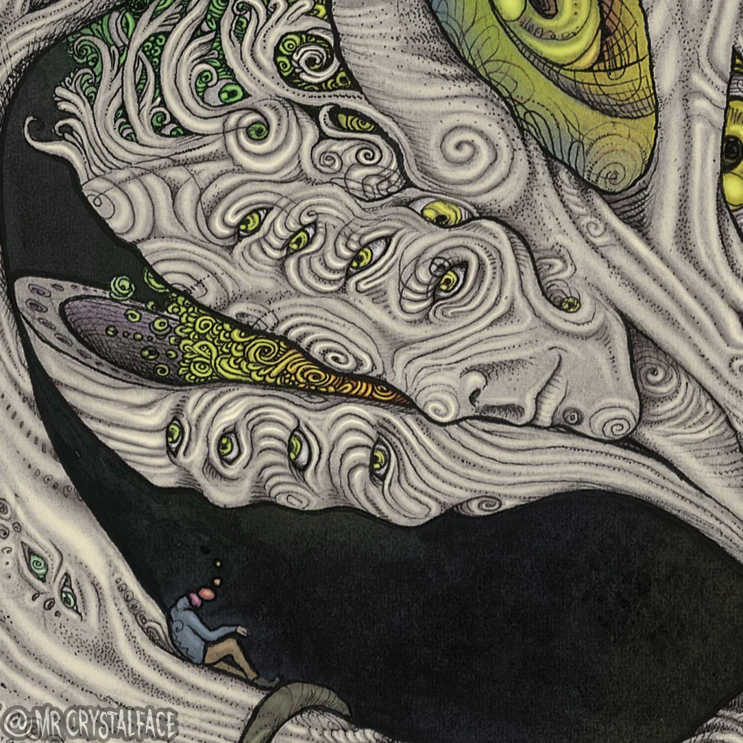 The eyes are attached to a face that is split in two. It seems to be speaking to him about something important but communicates in a language that Clay does not quite understand.